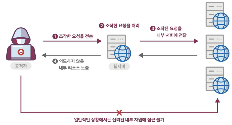 정의 | 검증 절차를 거치지 않은 사용자 입력값을 내부 서버간의 요청에 사용해 악의적인 행위가 발생할 수 있는 보안약점 |