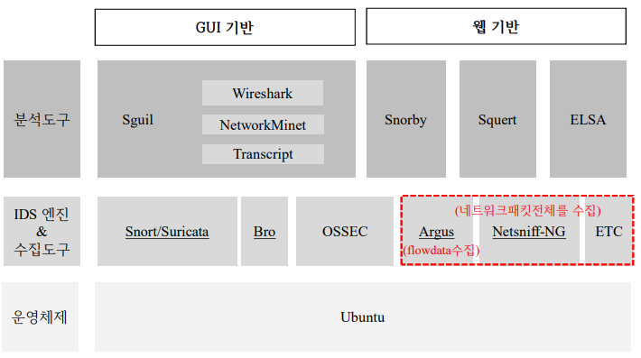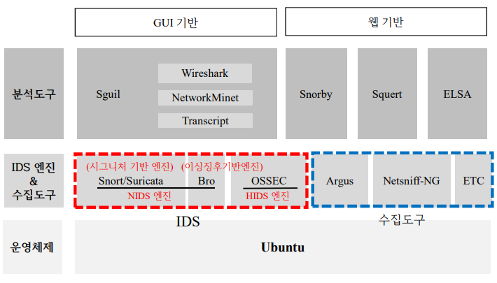 • 리눅스 기반 네트워크 보안 모니터링(NSM)과 침입탐지시스템(IDS) 역할 수행