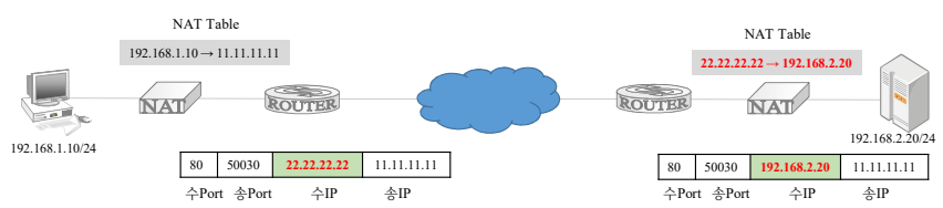 • 네트워크 주소 변환 (Network Address Translation)