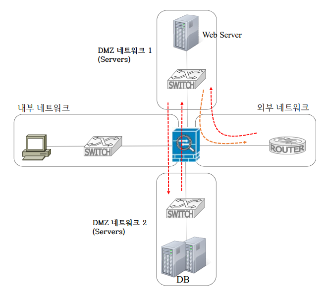 • 물리적 네트워크 경로 상에 보안장비를 설치