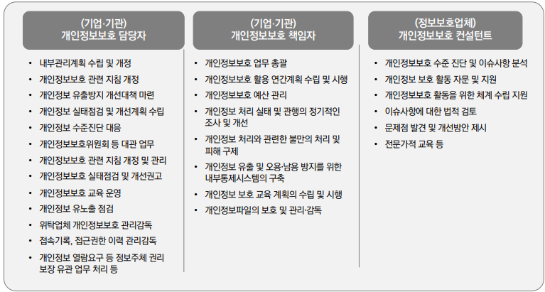 <개인정보보호 분야의 직무 >