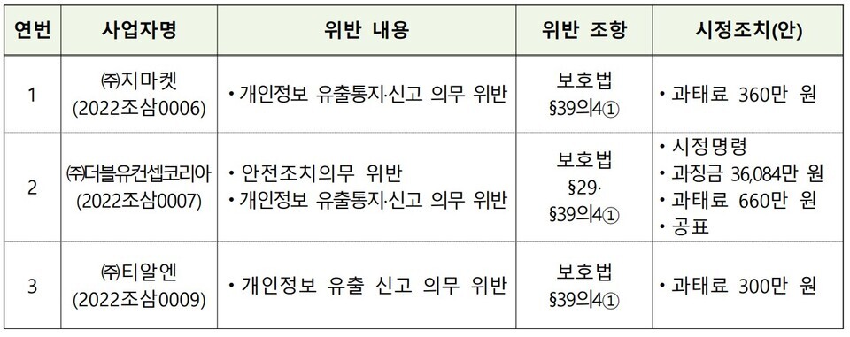 - 기업 및 기관의 개인정보 보호 위반과 과태료 처분 사례 -