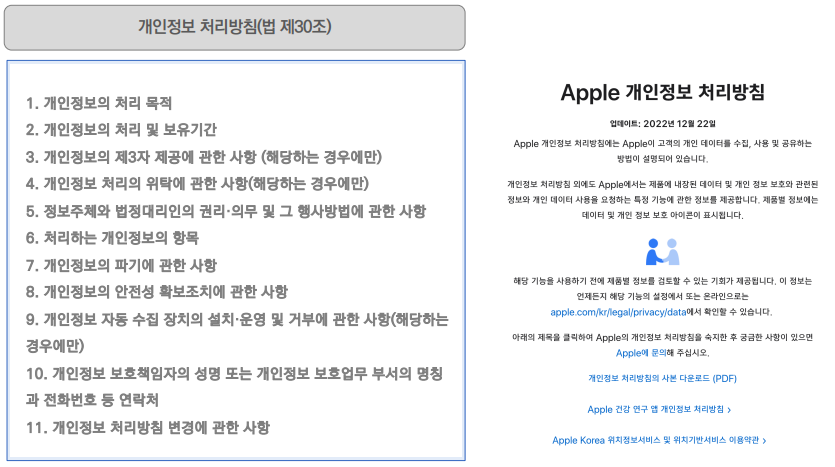 < 개인정보 처리와 개인정보처리방침 >