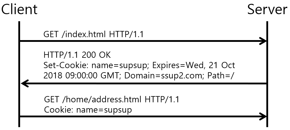 요청 헤더와 응답 헤더를 통해서 전달되고, 브라우저에 저장되며,