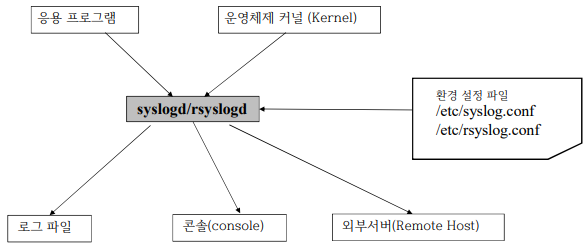 /etc/rsyslog.conf 파일로 특정 구간에서 발생하는 로그가 특정 구역에 저장되게 설정 가능