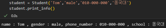 생성자(__init__) : 객체가 생성될 때 자동으로 실행, 생성시 필요한 코드를 포함