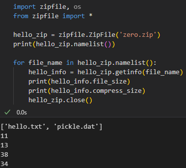 zipfile(File, Mode, Compression) | Mode와 Compression에 맞춰 압축 파일을 생성 |