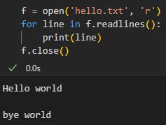 read() | 파일의 내용 전체를 문자열로 리턴 |