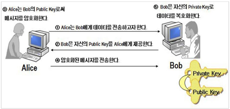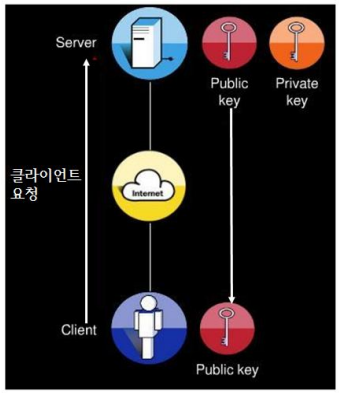 비대칭키: 공개키(대칭키를 암호화 시키는 용도)