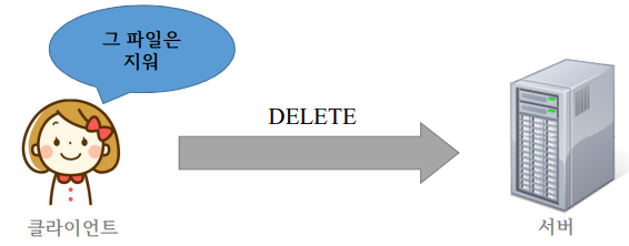 원격지 웹 서버에 파일을 삭제하기 위해 사용되며 PUT와는 반대 메소드