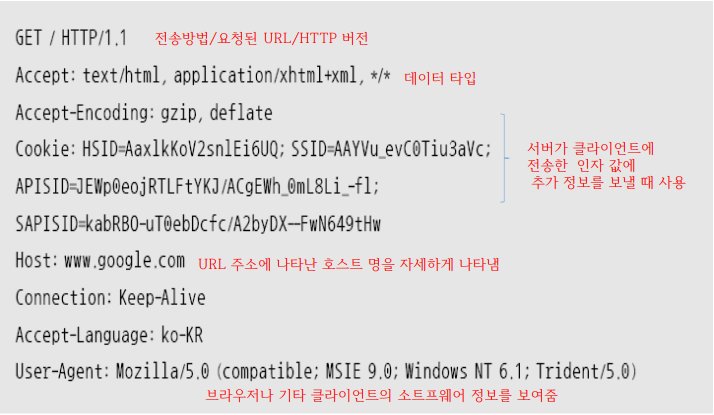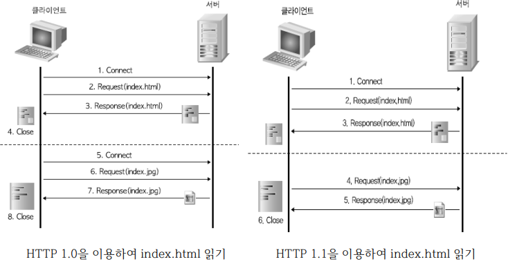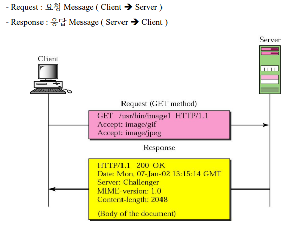 클라이언트와 서버 사이에 이뤄지는 요청(request) / 응답(response) 프로토콜