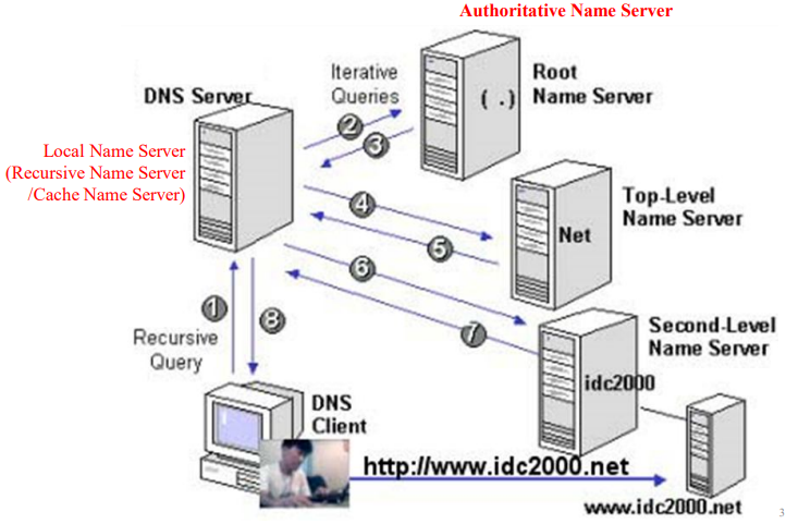 로컬 캐시 검색, 로컬 DNS 서버, 루트 DNS 서버Top-Level DNS 서버 순으로 쿼리를 보내 도메인에 대응하는 IP 주소 검색UDP로 운영