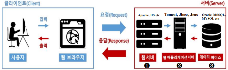 | 3 | DB Server | • 애플리케이션 실행 시 생성되는 데이터 관리 기능을 가진 미들웨어 • MySQL, PostgresSQL, Oracle Database |