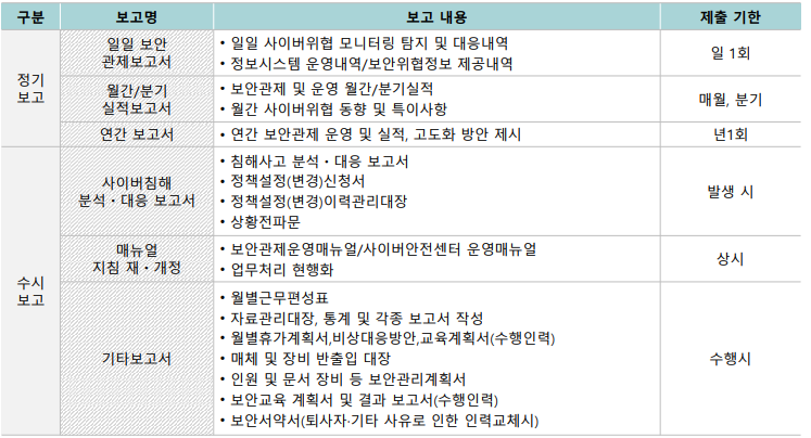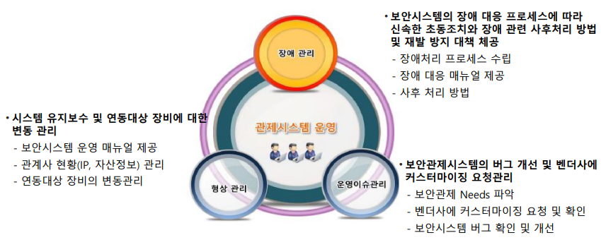 보안운영은 관제센터 내외부 자산에 대해 도입, 설치, 운영, 폐기 등