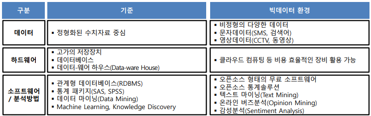 규모가 방대하고 생성 주기도 짧으며 형태도 수치 데이터 뿐만 아니라