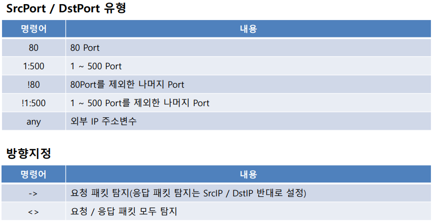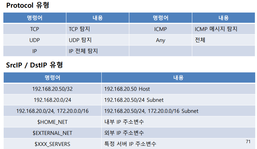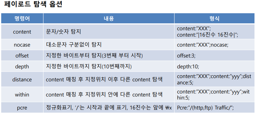 | 장단점 | 탐지속도가 빠르고 정확성 높음 사전에 분석된 공격형태만 탐지 가능 |