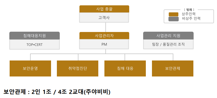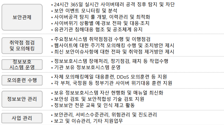 세부적으로 자산관리, 장애관리, 작업관리, 보안설정, 예방점검, 백업관리, 기술지원 등의업무를 수행