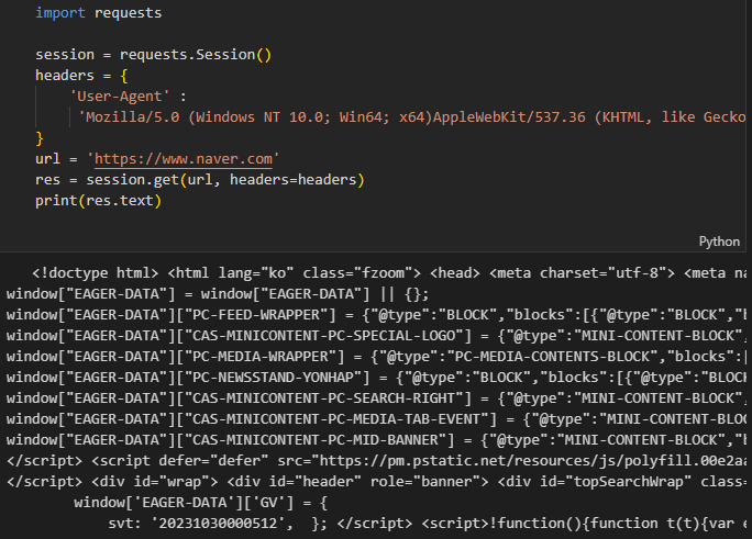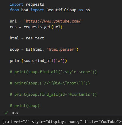 파이썬에서 가장 많이 사용되고 있는 모듈로는 BeautifulSoup, Requests가 있다