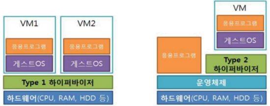 | Type2 하이퍼바이저 : 호스트(Host) 기반 |