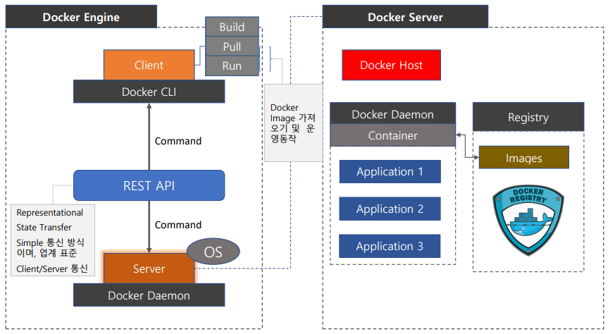 | Docker CLI | Docker Engine에 사용하는 Command Line Interface |