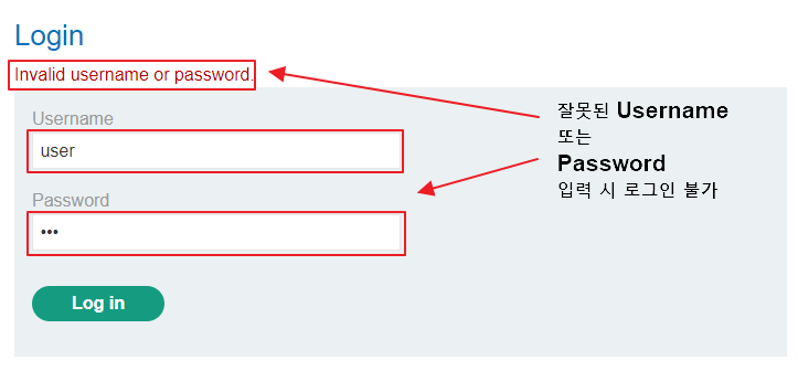 잘못된 Username 또는 Password 입력 시