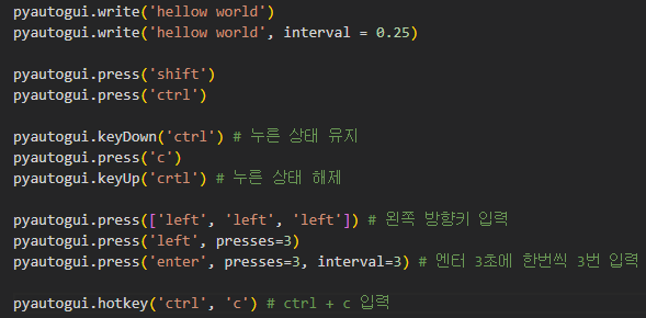 | hotkey(Key, Key) | 여러 Key를 동시에 입력해야 할 때 사용 |